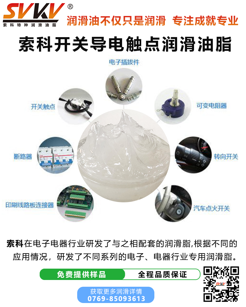 索科潤滑脂產(chǎn)品用于:航空、汽車零部件、電子、小家電、電動工具、光學(xué)儀器、美發(fā)器具、水族、玩具的各種主要零部件部位,索科擁有國際新技術(shù),品牌產(chǎn)品已達(dá)1000多個品種、5000多個型號,能滿足在高溫、高負(fù)荷、高速、高阻力、低溫、潮濕、長壽命等極端工況應(yīng)用。