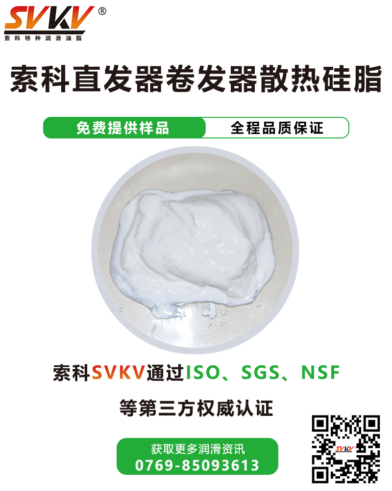 索科SVKV卷發(fā)器散熱硅脂專為直發(fā)器卷發(fā)器而研制,能有效改善產(chǎn)品散熱狀況,保證設(shè)備處于適宜溫度。
