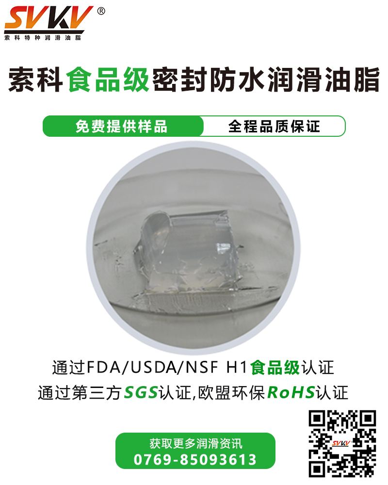 索科SVKV食品級密封防水潤滑油脂符合美國FDA和USDA法規(guī)標(biāo)準(zhǔn),通過美國USDA/NSF H1食品級認(rèn)證,無毒無害無味,對魚缸水質(zhì)無污染,保證魚兒安全。
