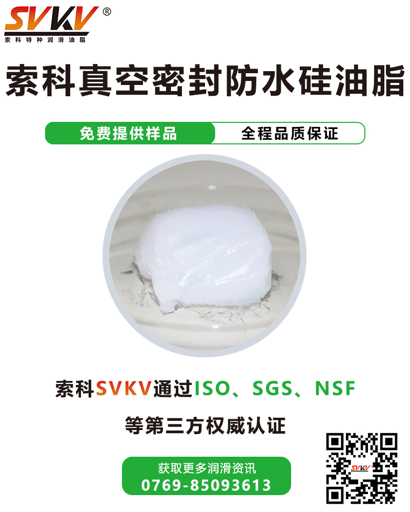 索科SVKV真空密封防水硅油脂廣范應(yīng)用于真空度達(dá)7.0×10 -7 kPa之真空系統(tǒng)中的磨口玻璃接頭及玻璃活塞的潤(rùn)滑與密封,食品、供水管道中的旋塞和閥門,金屬和橡膠密封件的密封與潤(rùn)滑。
