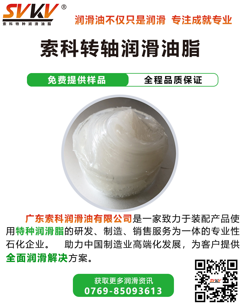 廣東索科潤(rùn)滑油有限公司是一家致力于裝配產(chǎn)品使用特種潤(rùn)滑脂的研發(fā)、生產(chǎn)、定制、服務(wù)為一體的專業(yè)性石化企業(yè)。致力為制造業(yè)客戶,提供專業(yè)的選油方案,協(xié)助客戶解決產(chǎn)品裝配時(shí)的潤(rùn)滑難題,還可根據(jù)客戶特殊需求訂做適合的潤(rùn)滑油品。有效提高產(chǎn)品性能、減低維護(hù)成本,索科助力制造業(yè)高端化發(fā)展!