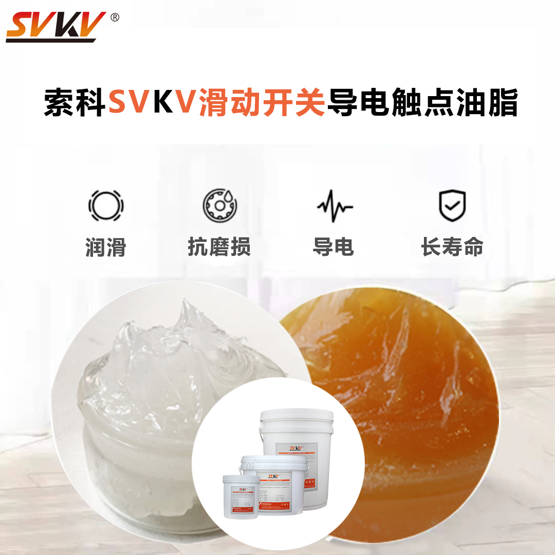 索科SVKV804滑動(dòng)開關(guān)導(dǎo)電觸點(diǎn)油脂是由無機(jī)皂稠化非矽酮類合成油加超導(dǎo)電添加劑?抗氧化劑等精煉而成,專為電子電器的旋轉(zhuǎn)和滑動(dòng)開關(guān)的防電弧?抗氧化?抗磨損和保護(hù)而設(shè)計(jì),能有效降低接觸電阻和溫升,防止積碳的產(chǎn)生。