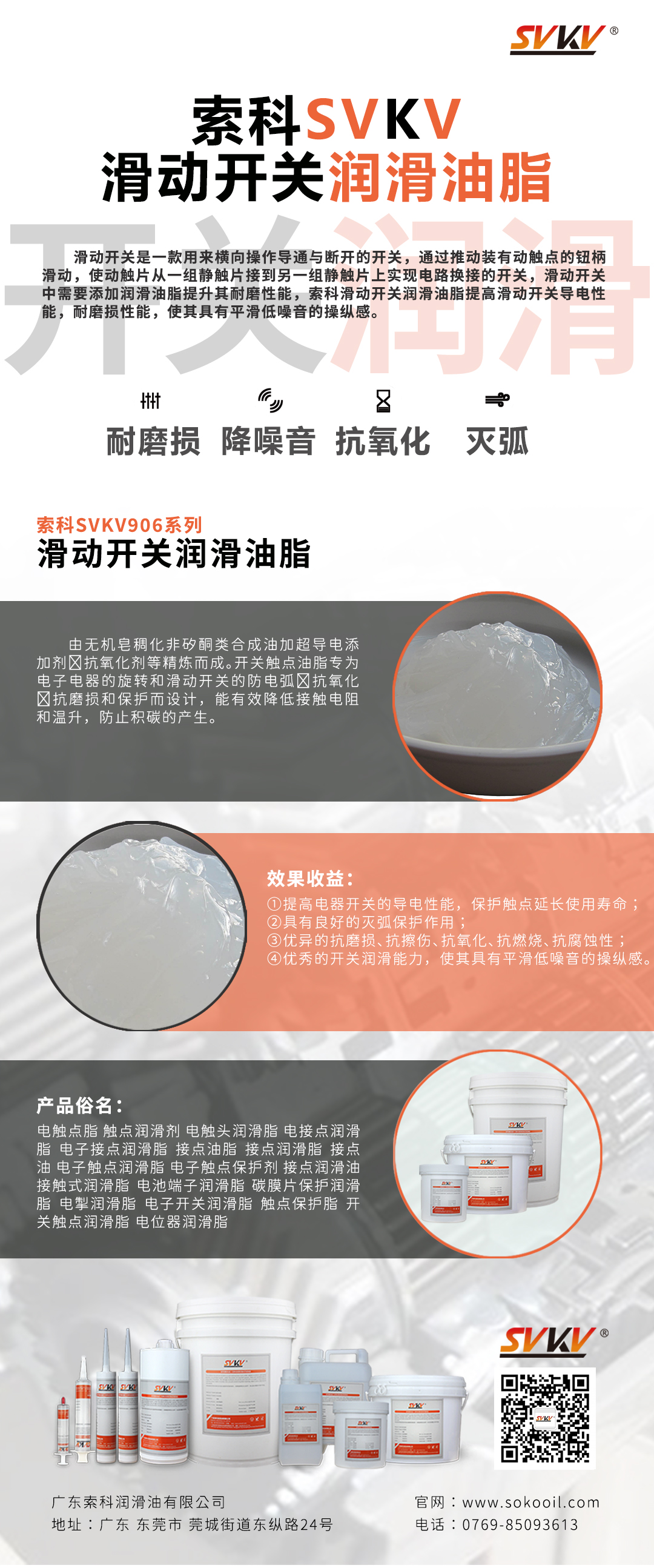 索科為企業(yè)提供潤滑方案,降本增效,適合的潤滑脂能有效提升導(dǎo)電性能,減少磨損,延長產(chǎn)品壽命。索科提供滑動(dòng)開關(guān)潤滑油脂0769-85093613免費(fèi)樣品,全程品質(zhì)保證!