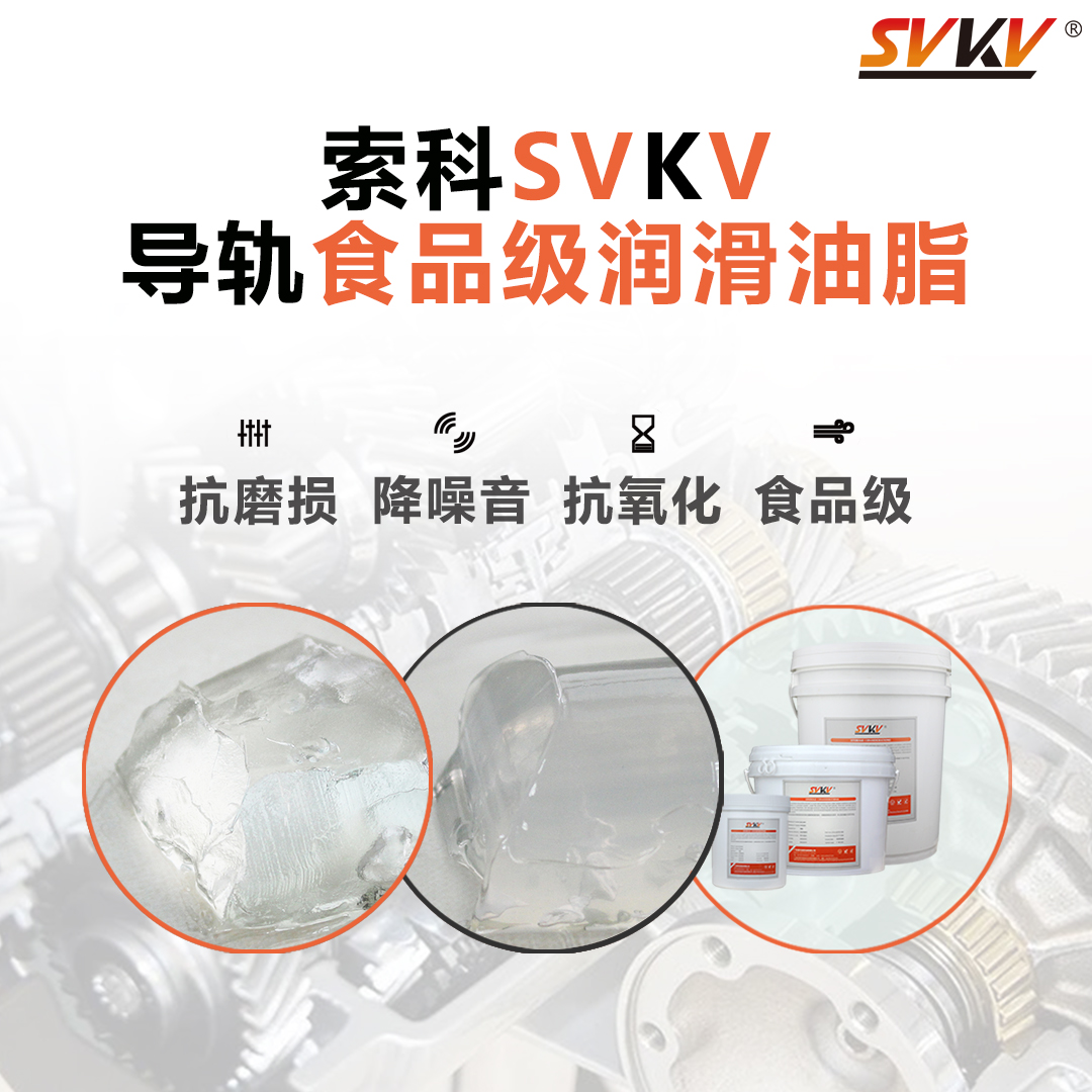 索科SVKV665系列導(dǎo)軌食品級潤滑油脂選用食品級的基礎(chǔ)油和無毒無害的添加劑精制而成,專為食品加工及醫(yī)療設(shè)備而研制。食品級降噪音潤滑油脂針對苛刻的工作環(huán)境(高/低溫、高轉(zhuǎn)速、高扭力)能有效的降低噪音,減少機械產(chǎn)品的磨損、延長其壽命并降低維護頻率。食品級降噪音潤滑油脂符合FDA和USDA的法規(guī)和標準,并通過USDA/NSF H-1食品極認證,保障食品安全,確保整條生產(chǎn)線滿足食品級潤滑要求。