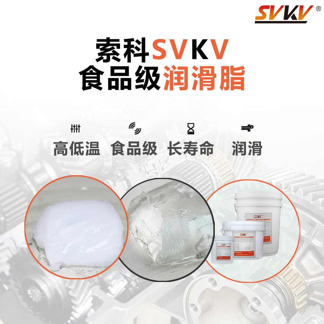 食品機(jī)械潤滑脂就必須得用食品級潤滑脂嗎?這是不一定的,主要看具體用在什么地方。如果是單獨(dú)的密封的傳動(dòng)部件,不直接而和食品及食品包裝接觸,是不需要用食品級的潤滑油。如果運(yùn)動(dòng)部件可能與食品或者食品外包裝接觸,還是需要用食品級潤滑脂。索科SVKV SK系列食品級潤滑脂,通過美國食品級NSF H1認(rèn)證有效食品器械潤滑需求。