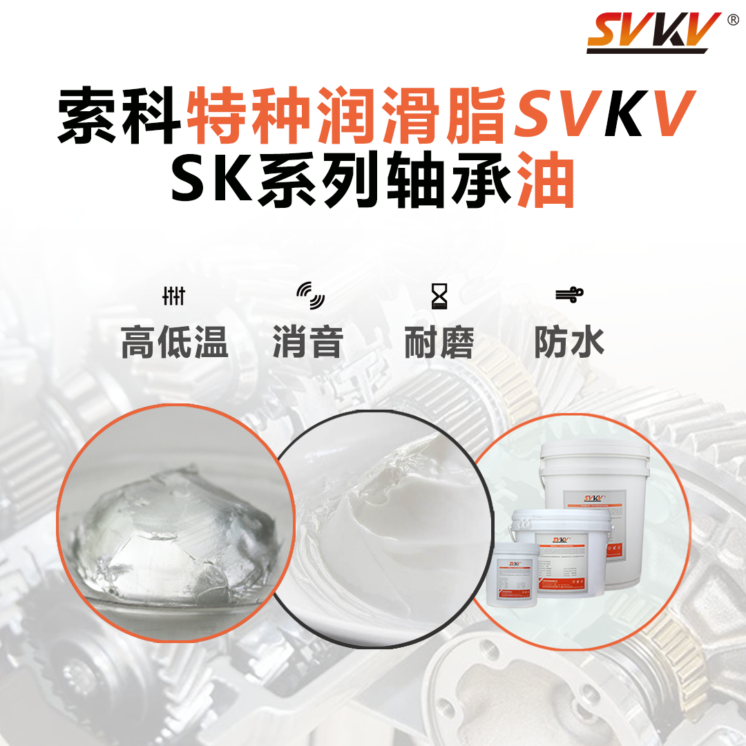 軸承部位的潤滑是為了減小摩擦、降低溫度、延長使用壽命和防止部件磨損。軸承等高速旋轉(zhuǎn)部件,通常選擇油脂潤滑。使用潤滑油脂時(shí),需要在潤滑部位建立一個(gè)潤滑膜,使摩擦表面在液體層的滑動(dòng)中減少摩擦因素。涂油的方法一般有噴、刷、滴等形式。涂抹軸承時(shí),需要在潤滑蓋板上注入潤滑脂或者油,并且經(jīng)過使用一段時(shí)間后,需要將舊潤滑脂或者油及時(shí)清除,再重新涂敷新的潤滑劑。推薦索科SVKV SK486/0系列軸承油。采用特殊的全合成油和獨(dú)特的添加劑制成。