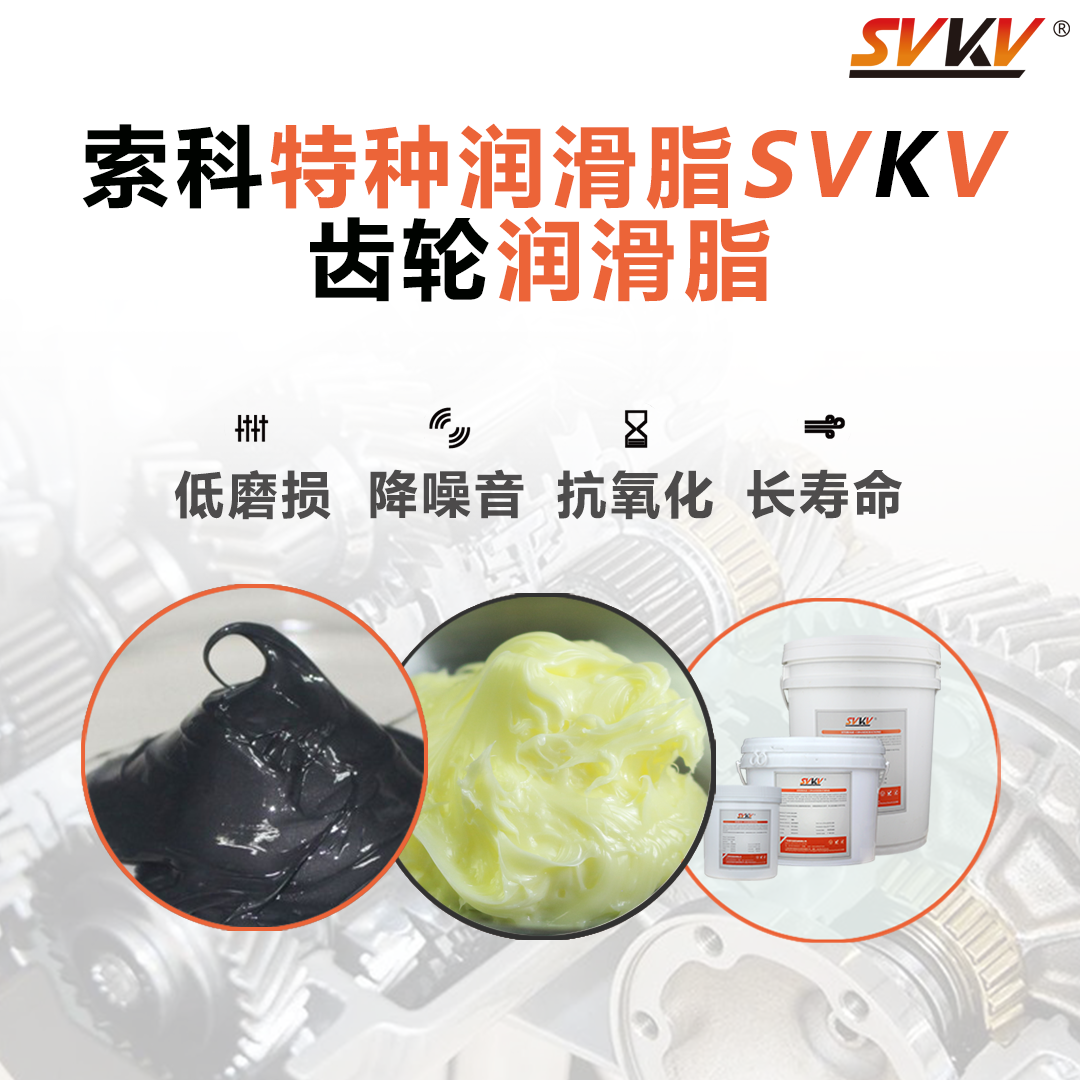 推薦索科SVKV SK734系列齒輪潤滑脂。減少其齒輪磨損,降低噪音,達到長壽命的效果。有多種類型且可定制,適用各類齒輪、軸承、減速電機的潤滑。